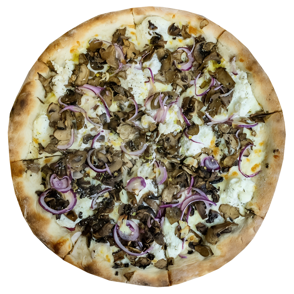Riche, réconfortante & adorée de tous — mozzarella, ricotta crémeuse, champignons assaisonnés & oignons rouges, le tout relevé d’une touche éclatante de zeste de citron.